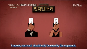 640x361 - Blind man's bluff (also called indian poker, or squaw poker or oklahoma forehead or indian head) is a version of poker that is unconventional in that each person sees the cards of all players except their own.