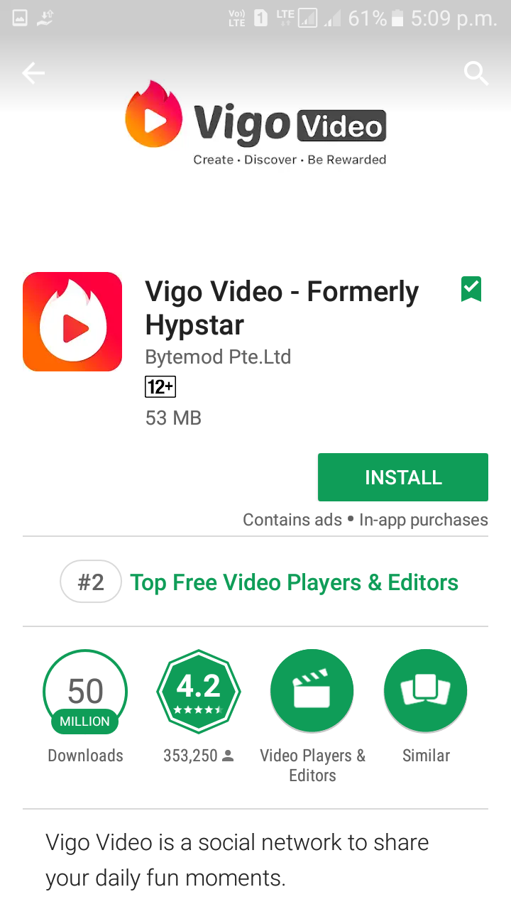 Install Vigo Video App / Vigo video for android is the application of a social network on which you can record short funny videos and share them with the rest of the other users.