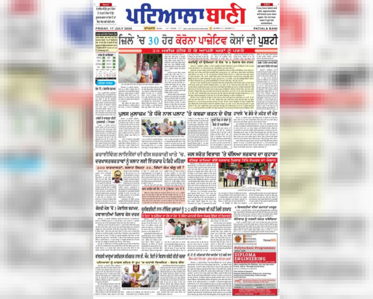 Patiala Bani Newspaper Today / Information about holidays, vacations, resorts, real estate and property together with finance.